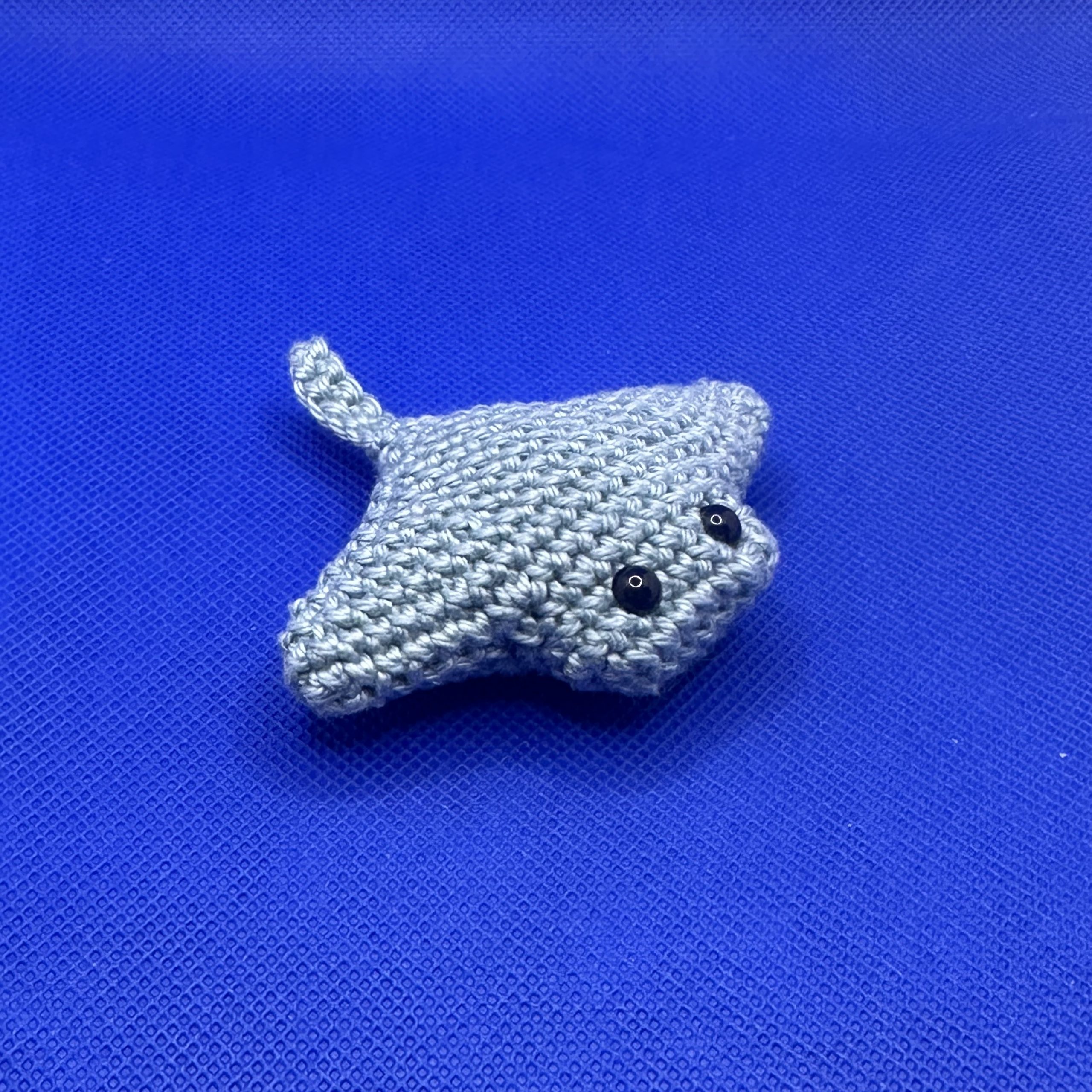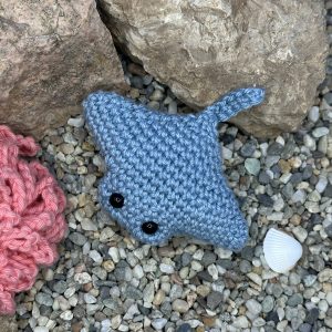Cette petite raie habillera parfaitement le fond de votre aquarium. Elle est réalisée entièrement en crochet avec de la laine coton et avec des yeux de sécurité. Dimensions : 7cm x 2cm x 7cm. Ne convient pas aux enfants de moins de 3 ans.